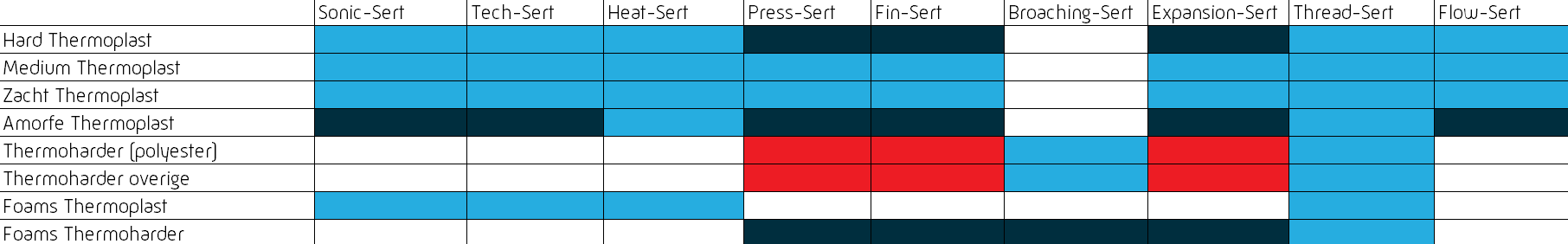 Inserts zijn daardoor onmisbaar in toepassingen waar sterke, robuuste verbindingen vereist zijn, of waar materialen zoals kunststof extra ondersteuning nodig hebben om betrouwbare schroefverbindingen te garanderen.